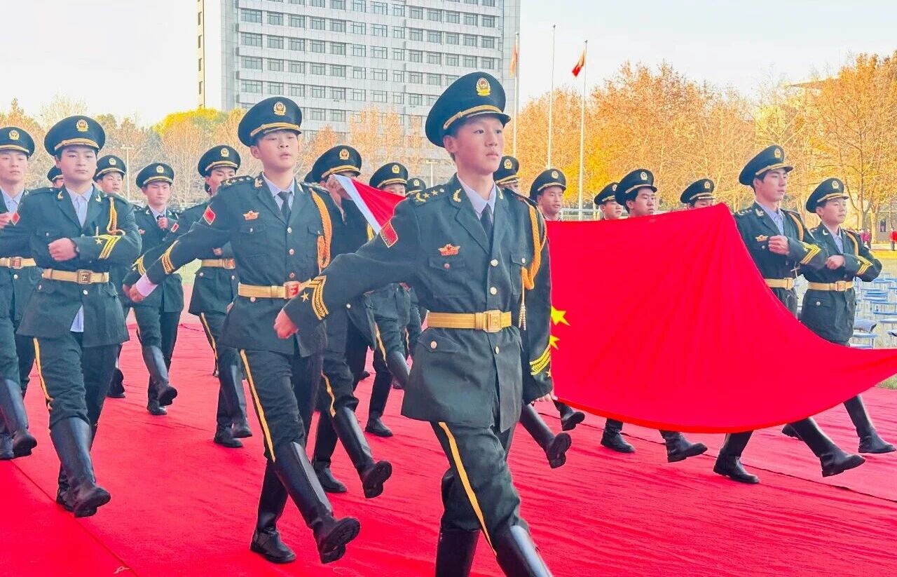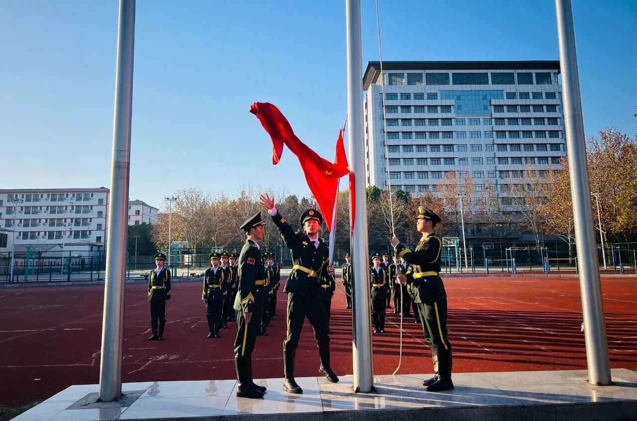 大会在庄严的国歌声中拉开序幕,伴随着冉冉升起的五星红旗,全体师生肃立行注目礼,胸中激荡着对祖国的赤诚与对未来的憧憬。