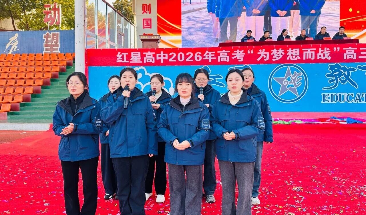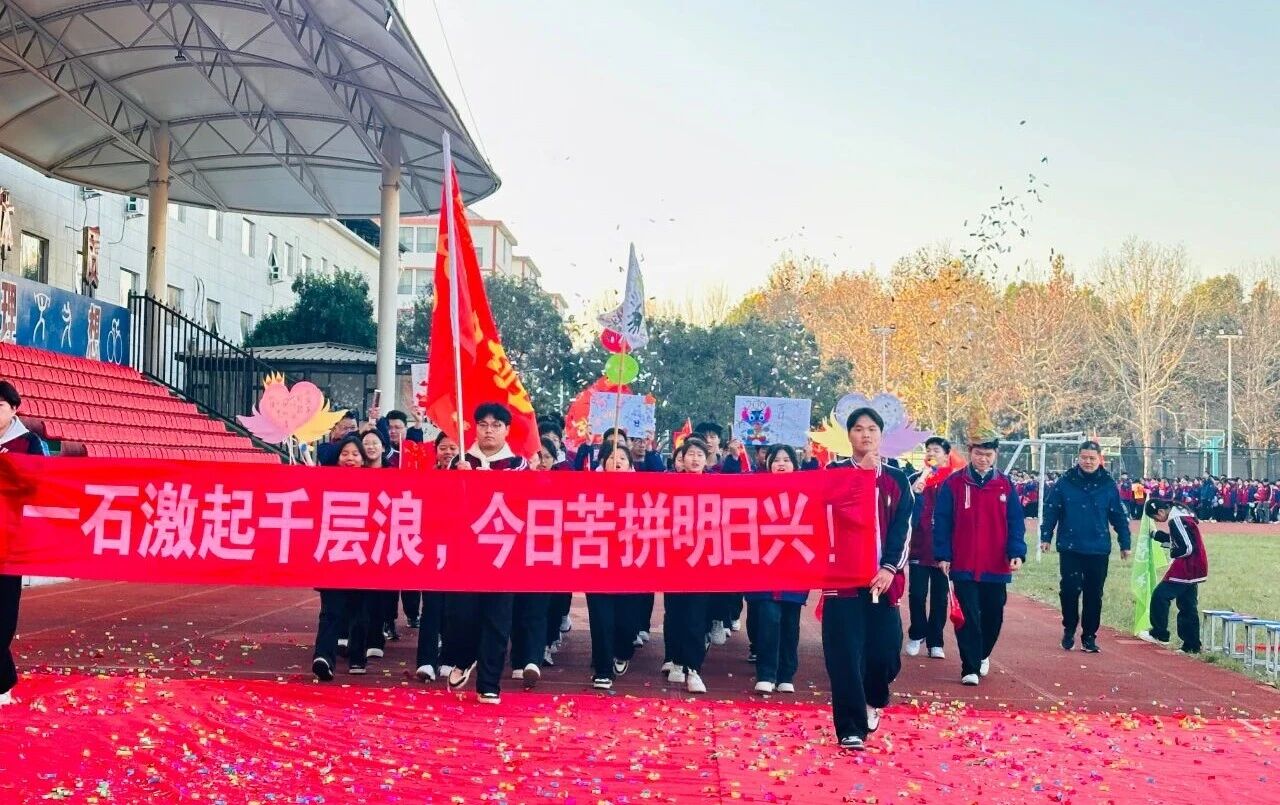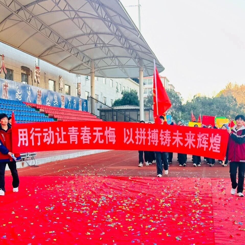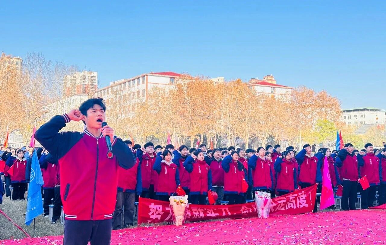 冬日暖阳沐人心,砥砺奋进正当时。2025年11月21日上午8:00,宝丰县红星高级中学田径场上,旌旗猎猎、掌声雷动。一场以“青春、感恩、责任、奋斗”为主题的誓师大会在此隆重举行。红星教育集团总校办公室主任许豪辉、红星教育集团总校督导室主任杨要顺、红星高中校长张俊杰、教务处主任董志凯、政教处主任白永磊、高三年级主任袁向阳、高三年级全体师生及部分家长代表参加了此次大会,会议由团委书记范继详主持。